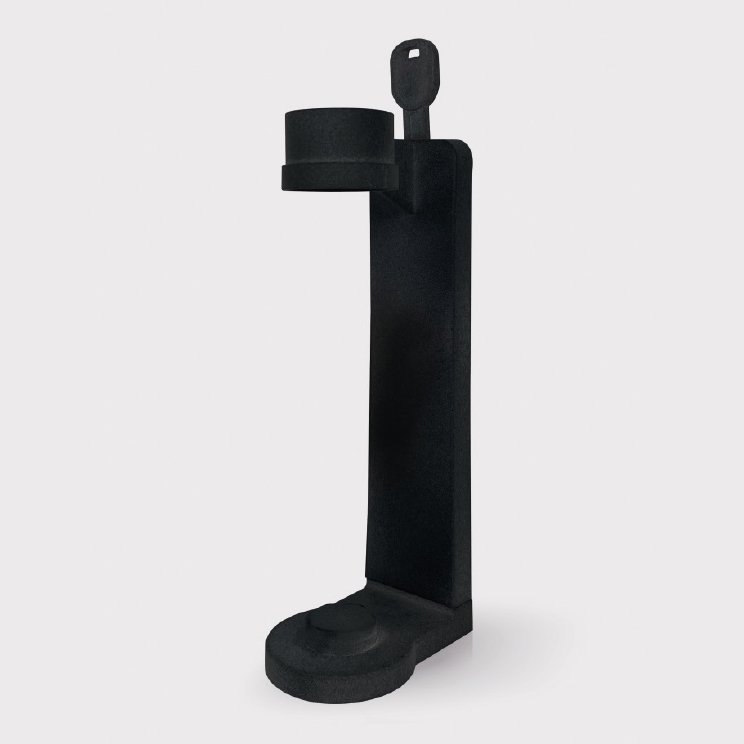 Šis elegantiškas matinės juodos spalvos aksesuaras derina stilių ir funkcionalumą, todėl jis tampa rafinuotu vonios kambario akcentu. Dėl minimalistinio dizaino sieninis laikiklis yra beveik nematomas, todėl „Nefél“ butelis atrodo lyg kybotų ore. Sieninis laikiklis turi specialią apsaugą nuo vagysčių ir klastojimo, kurią galima atrakinti tik pridedamu raktu.
